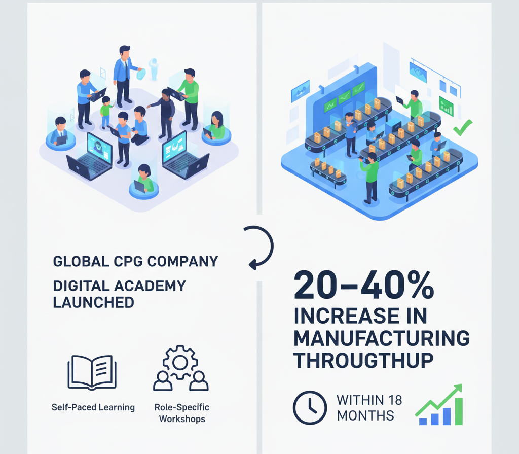 To promote a “learning mindset,” all employees, regardless of role, need a shared vocabulary and understanding of the company’s digital ecosystem. Generative AI, agile methodologies, data fluency, and the internal tech stack are the core focus. Hybrid models are delivered using external on-demand courses augmented by internal subject matter experts (SMEs).