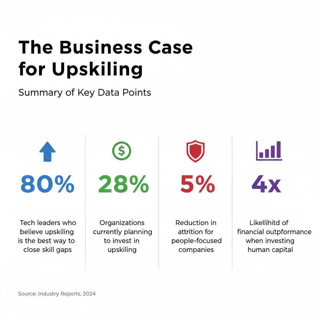 Connect upskilling directly to incentives, performance reviews, and promotions. When managers act as teachers and provide the “space” to learn, skill retention skyrockets.