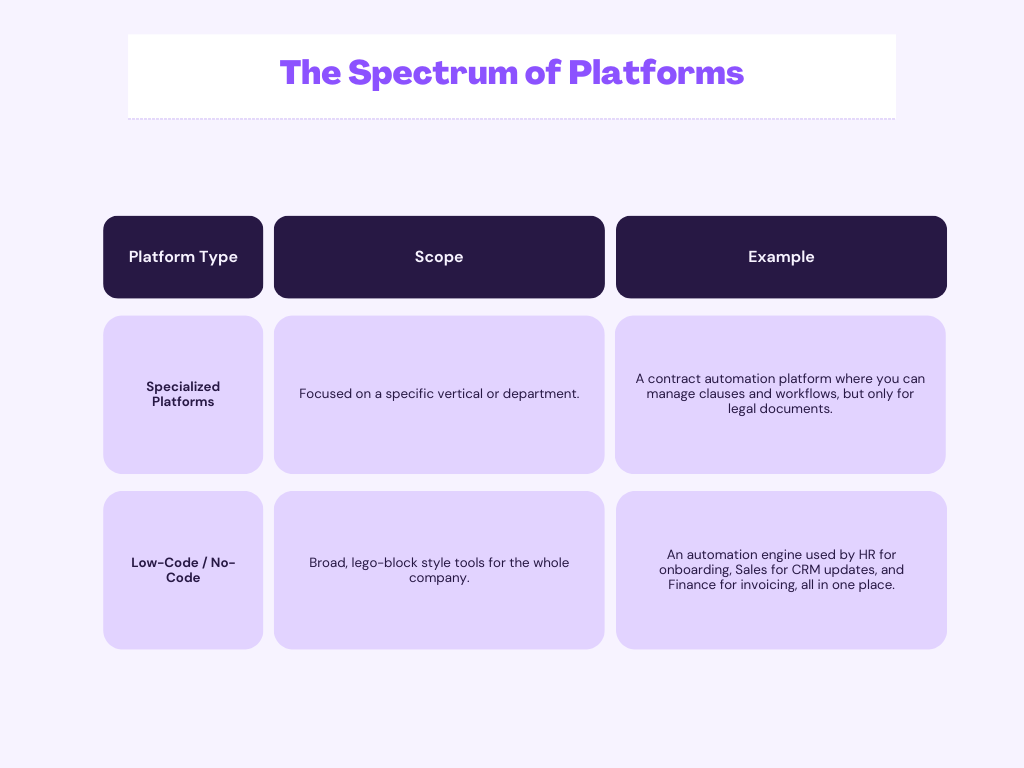 The most immediate drain on a budget isn’t just subscription costs but tool sprawl. Instead of managing separate licenses for Legal, HR, and Finance, a platform acts as a unified engine for the entire enterprise. If a platform solution automates the final 30% of a task that a point solution missed, that is a 1:1 gain in reclaimed time. Multiply that across every department, and the ROI becomes undeniable.